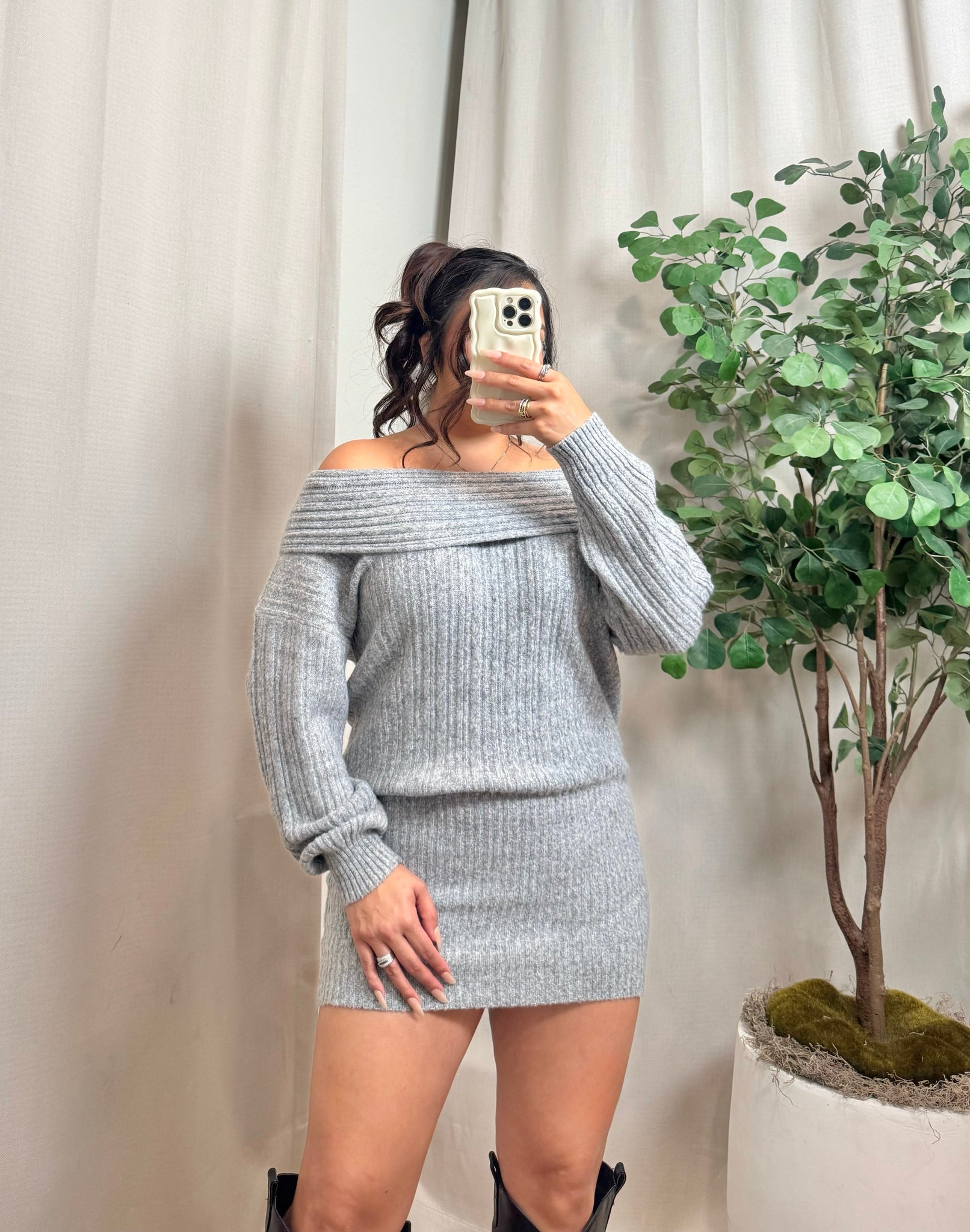Off the shoulder knit sweater dress
