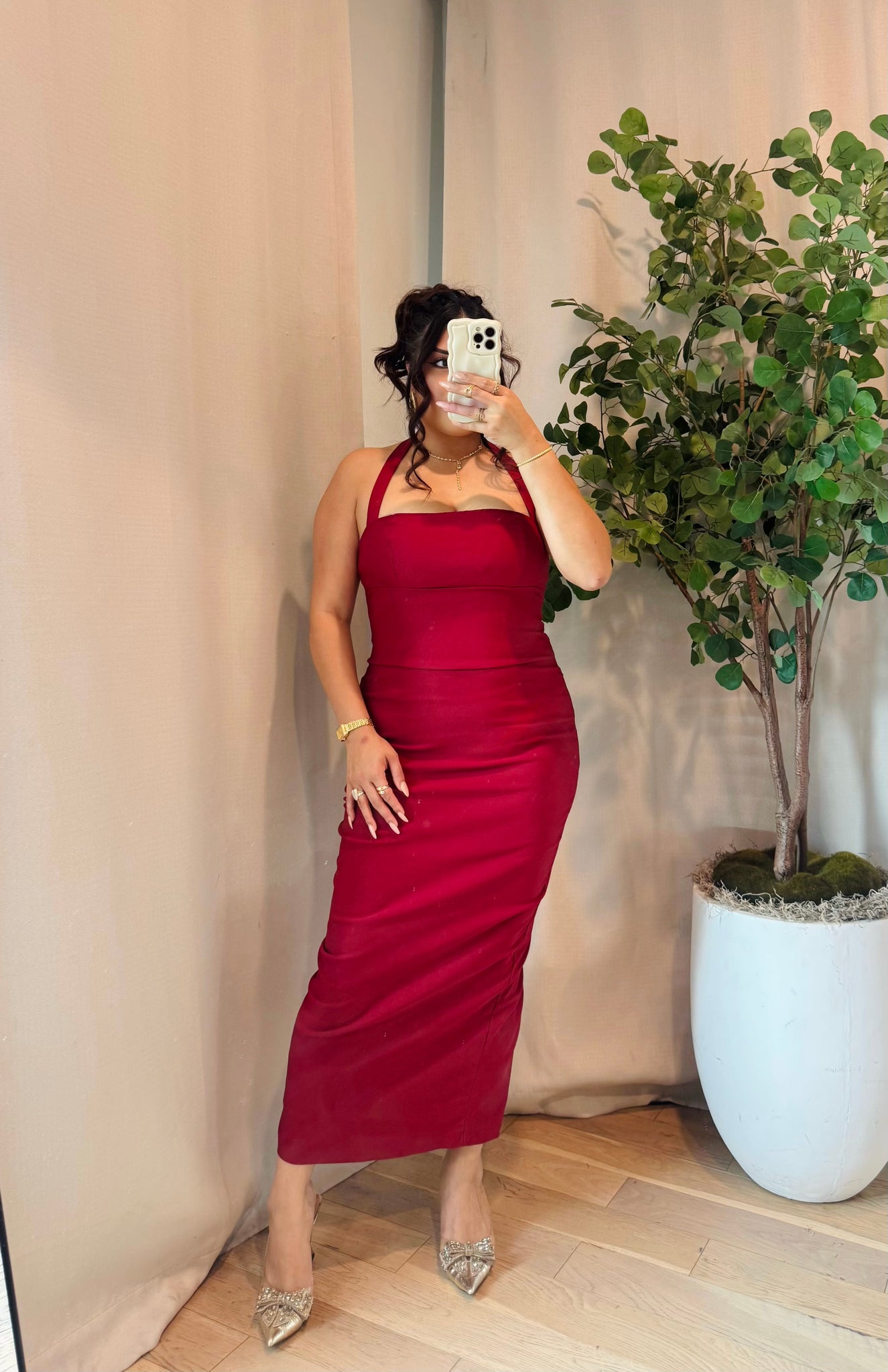 Linen double lined halter neck midi dress